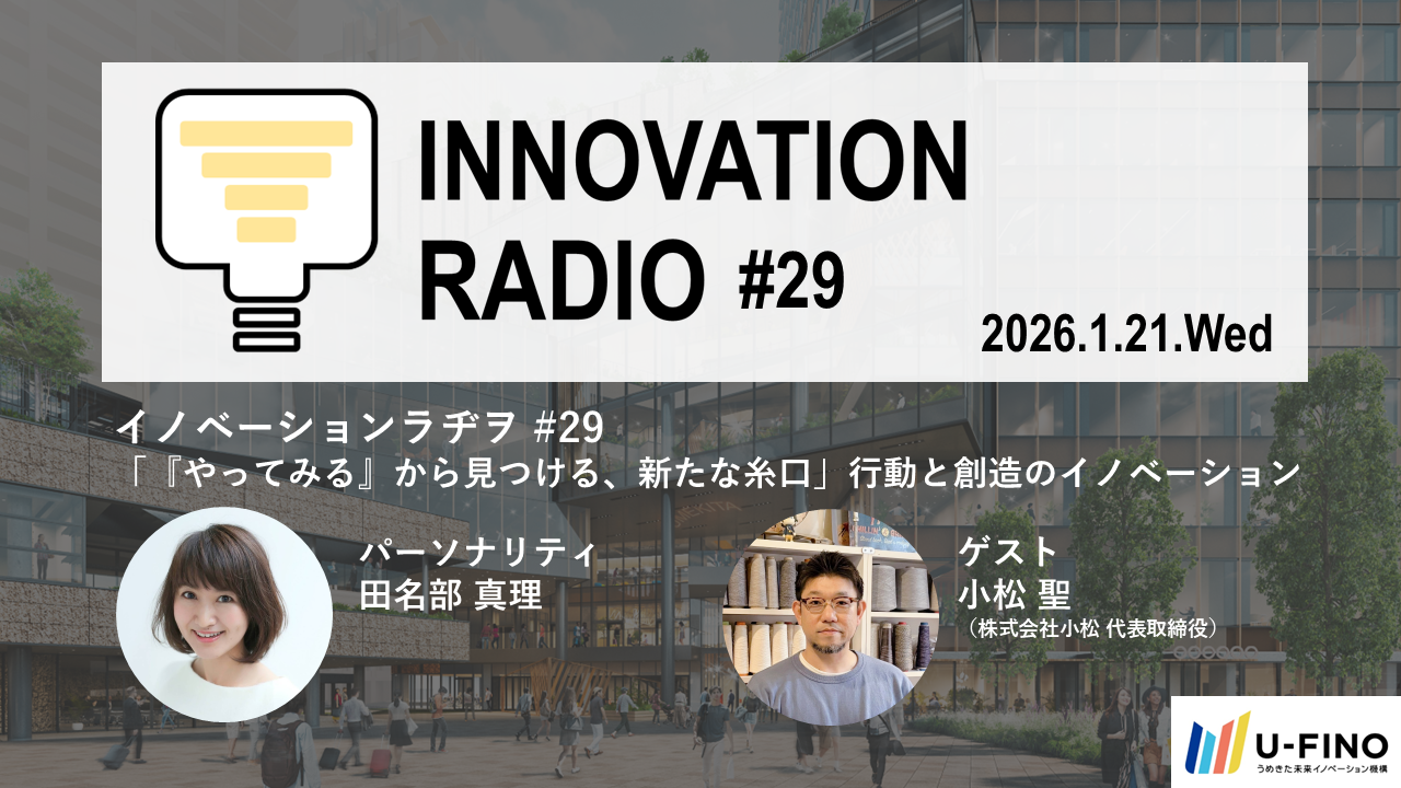 2026/1/21(水)18時30分からゲストに株式会社小松 代表取締役 小松聖さんさんをお招きし、対話型イベント「イノベーションラヂヲ#29」を開催します!