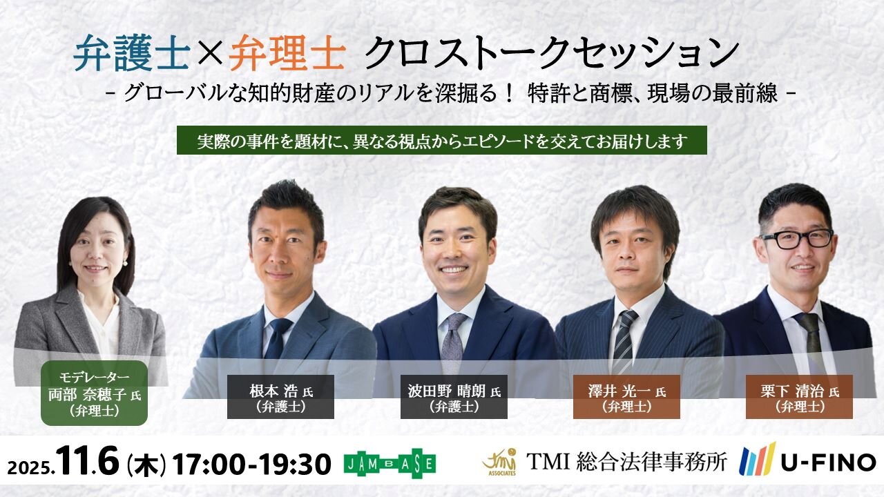 2025/11/6(木)「弁護士×弁理士 クロストークセッション ―グローバルな知的財産のリアルを深掘る! 特許と商標、現場の最前線―」を開催します!