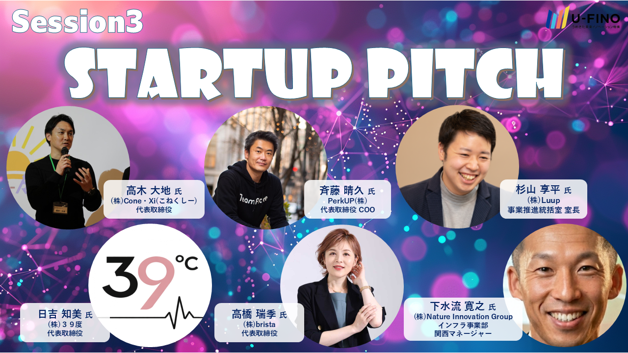 高木 大地 氏(株式会社Cone・Xi(こねくしー)・代表取締役) 1990年生まれ(35歳)広島県福山市出身。岡山県在住。看護専門学校卒業後、看護師として従事。医療機関、介護施設、訪問看護などを経験し、2017年に起業。医療介護現場における採用支援、オペレーションなどの支援を行う。慢性的な人材不足を解決すべく訪問看護BPО×HR事業を岡山県で検証を終え、関東圏で展開中。看護師の笑顔は我々が作ります 斉藤 晴久 氏(PerkUP株式会社 代表取締役 COO) 早稲田大学卒業後、SCSK株式会社を経てアマゾンジャパン合同会社に入社。「Amazon出品サービス(マーケットプレイス)」の立ち上げに参画し、カテゴリ拡充や300社以上の参画支援、API連携システムの日本ローンチを主導するなど、同社の急成長期を支える。 その後、株式会社スペースマーケットのGMとしてシェアリングエコノミー市場の啓蒙と開拓を牽引。リノベる株式会社では執行役員として、スマートホーム(Living Tech)など新規事業を担当する。Eコマース、CtoCシェアリング、不動産テックと、異なる領域においてプラットフォームを構築し、スケーラブルな事業モデルへと成長させてきた実績を持つ。 現在は自身も山梨県の古民家と都心の2拠点生活を実践。「現場のリアリティ」と「テクノロジーの可能性」の双方を知る強みを生かし、アナログで複雑な団体旅行・合宿の手配ロジックを独自のアルゴリズムでシステム化。世界と地域をダイレクトに接続する、新たなインフラ構築を統括している。 杉山 享平 氏(株式会社Luup 事業推進統括室 室長) 大学卒業後、新卒で不動産会社に入社し、6年半にわたり不動産販売営業に従事。宅地建物取引士及び賃貸不動産経営管理士の資格を活かし、不動産運用や顧客対応に精通。 その後、株式会社Luupに入社。主にポート設置の東日本営業マネジャーとして社内外の提案活動をリード。東京のポートを100箇所から7,000箇所に増やす。現在は室長として新規事業やプロセス改善、企業間連携などの企画機能全般を管掌。 プライベートでは大の野球好き。とあるプロ野球球団ファン。 日吉 知美 氏(株式会社39度 代表取締役) 1989年生まれ。和歌山県出身。大阪市在住。奈良女子大学文学部卒。 東京都SUTEAM事業採択の女性起業家プログラム「Female Founders Door」にてスタートアップ起業を志し活動中。 自身が推し活遠征や海外一人旅で宿泊難民を経験したことをきっかけに、 イベント時の宿泊費高騰・宿泊不足を解決する相部屋マッチングプラットフォーム「RooMATE」を創業。 「好きな時に、好きな場所で、好きなことに熱中できる世界」を実現することがミッション。 高橋 瑞季 氏(株式会社brista 代表取締役) 札幌市出身。大学卒業後、某大手証券会社へ入社。プライベートバンカーとして大企業経営者を担当。キャリアアップや年齢とともに仕事上のファッションの悩みに直面。女性が職場で活躍することが求められる日本で「職場での女性の服装」の課題解決のため当事業を開始。スーツやジャケット、ワンピースなどのレンタルとともに、AIカスタマーサポート「葉月」を開発している。 下水流 寛之 氏(株式会社Nature Innovation Group インフラ事業部 関西マネージャー) 1981年生まれ、大阪府枚方市出身。2026年1月より株式会社Nature Innovation Group インフラ事業部 関西マネージャー。日本初の傘シェアリングサービス「アイカサ」を関西エリアの鉄道駅、商業施設、沿線施設に設置~利用を推進。現在、関西エリアのJR、私鉄を中心に168駅241ヶ所に設置済。2026年度中に1,000駅2,000ヶ所への設置を目指す。今夏には、大阪府+各鉄道会社との合同イベントも実施予定。仕事柄、休日は鉄道路線図を眺める時間が増えたり、趣味のランニングを兼ねて関西エリアの駅界隈を散策しています。