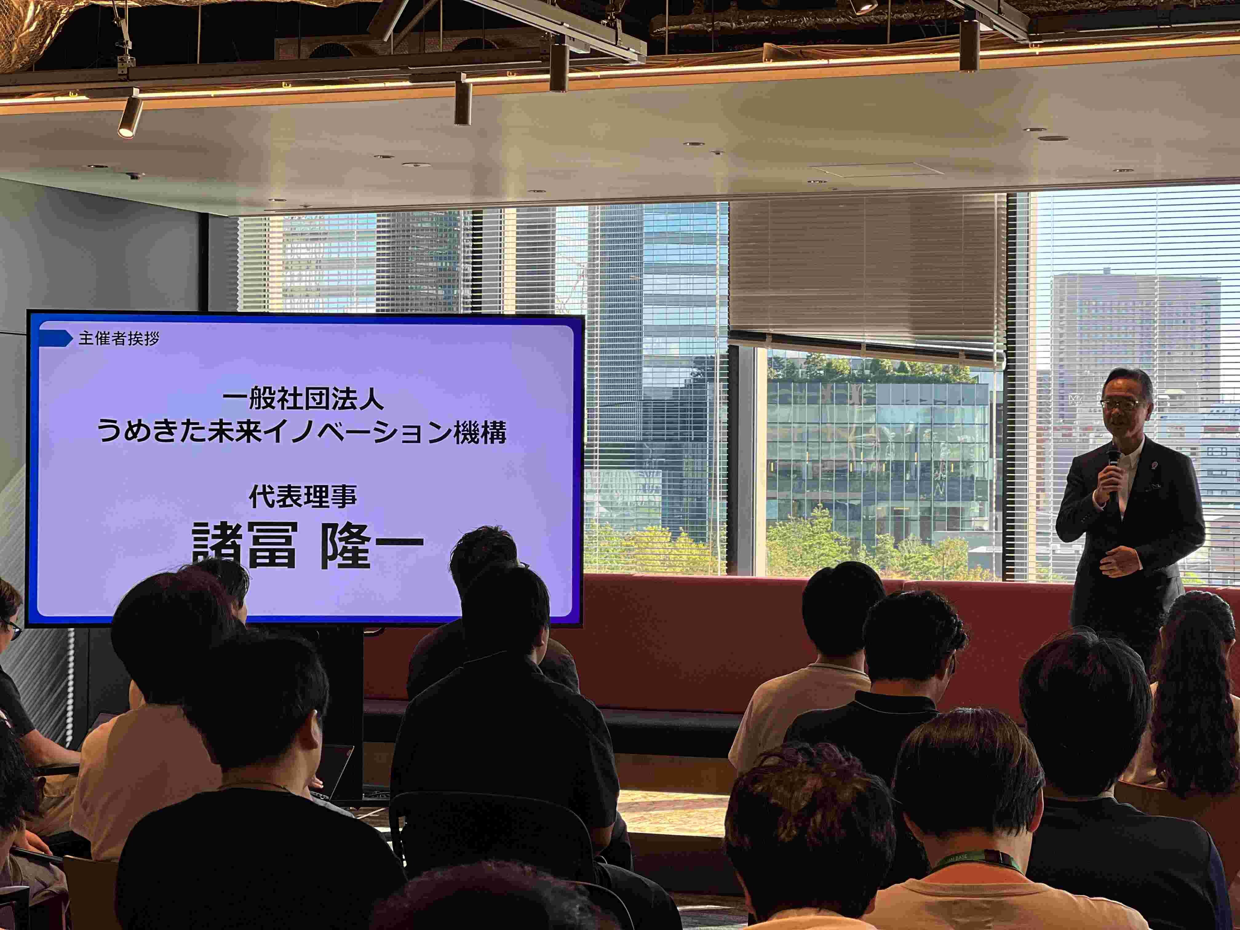 開会にあたり、U-FINO代表理事 諸冨より挨拶を行い、うめきたエリアにおける未来志向の共創のあり方や、今回の交流会に込めた想いを共有しました。