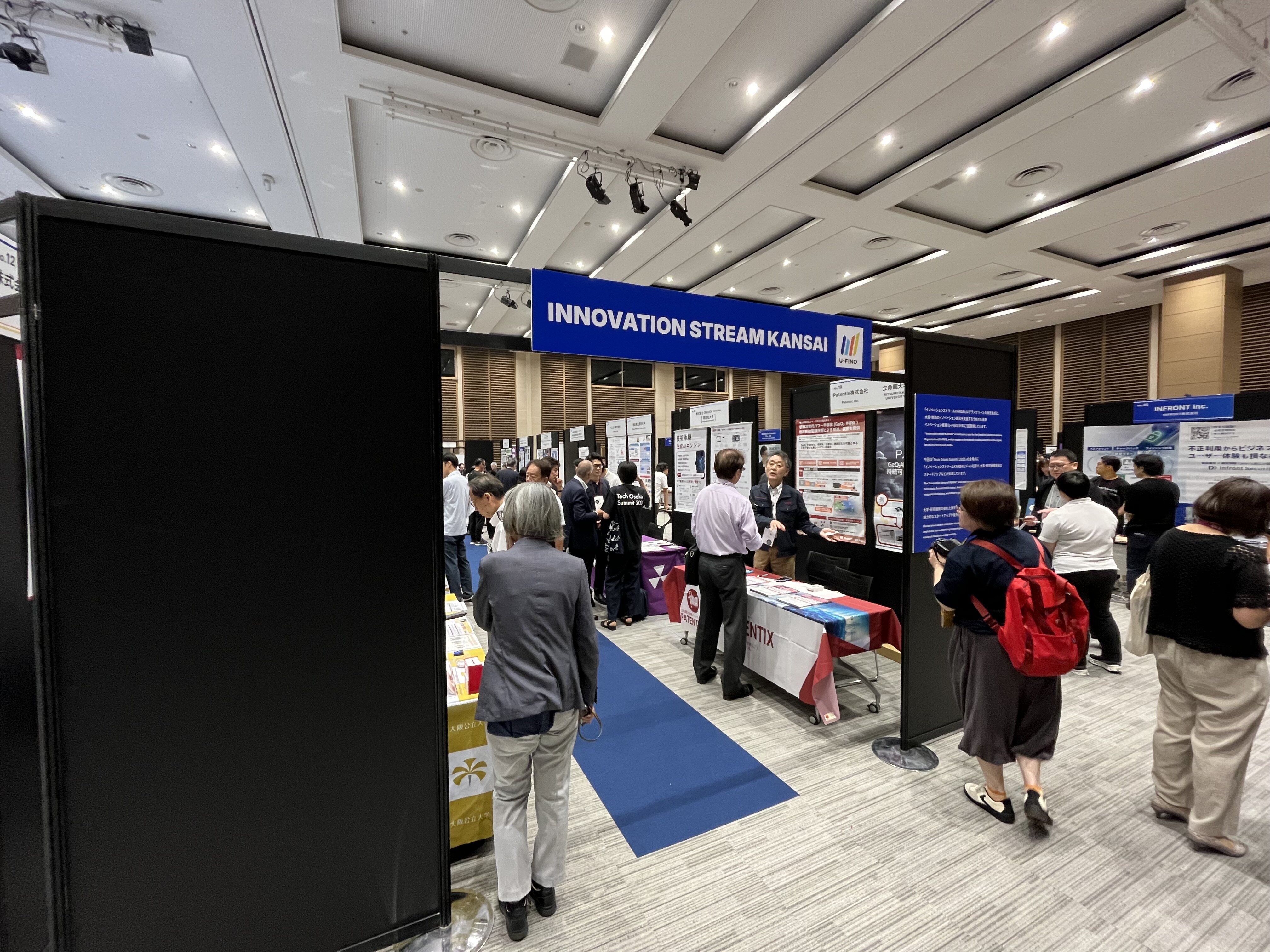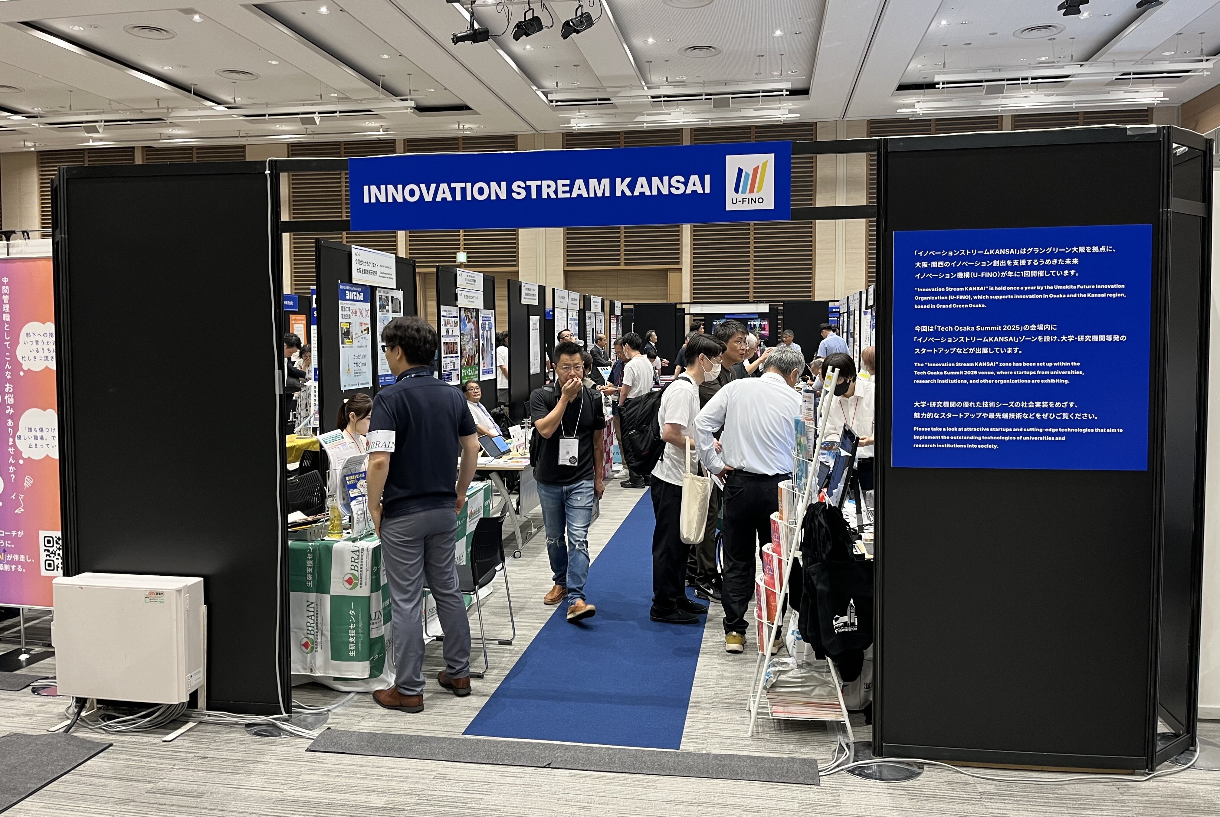 U-FINOのほか、大阪市、公益財団法人大阪産業局、独立行政法人日本貿易振興機構(ジェトロ)大阪本部、公益財団法人都市活力研究所が参画する実行委員会主催の「Tech Osaka Summit 2025」の展示会場内に、「イノベーションストリームKANSAI」出展ゾーンを設置しました。