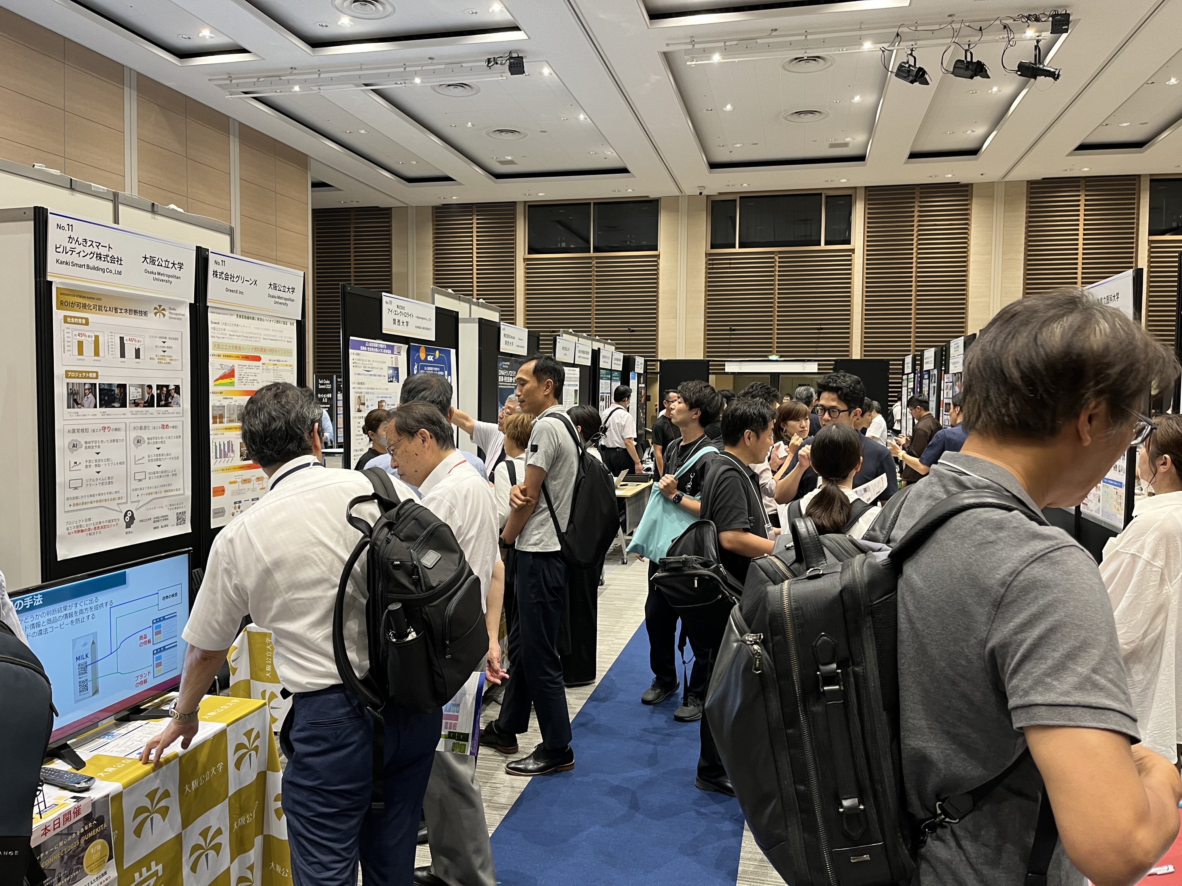 「イノベーションストリームKANSAI」出展ゾーンにも、海外を含む多数の方にお立ち寄りいただき、例年に無い盛況ぶりとなりました。U-FINOによる単独開催では得難い、一体開催による高い効果を実感する機会となりました。