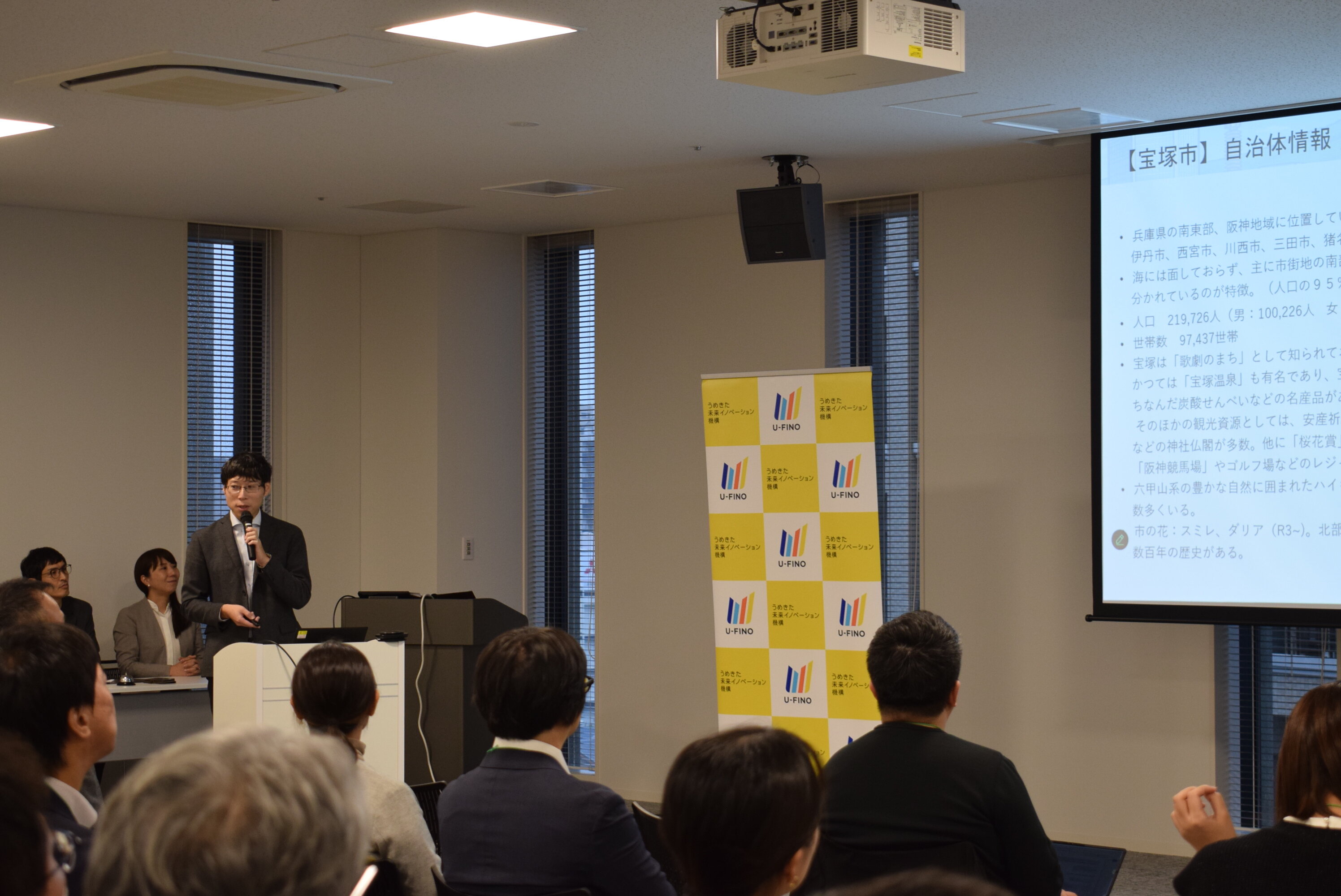 2回目も1回目と同様に、公募内容の説明後、自治体からのリバースピッチを行い、高島市、宝塚市、鳥取県の皆様にご登壇いただきました。